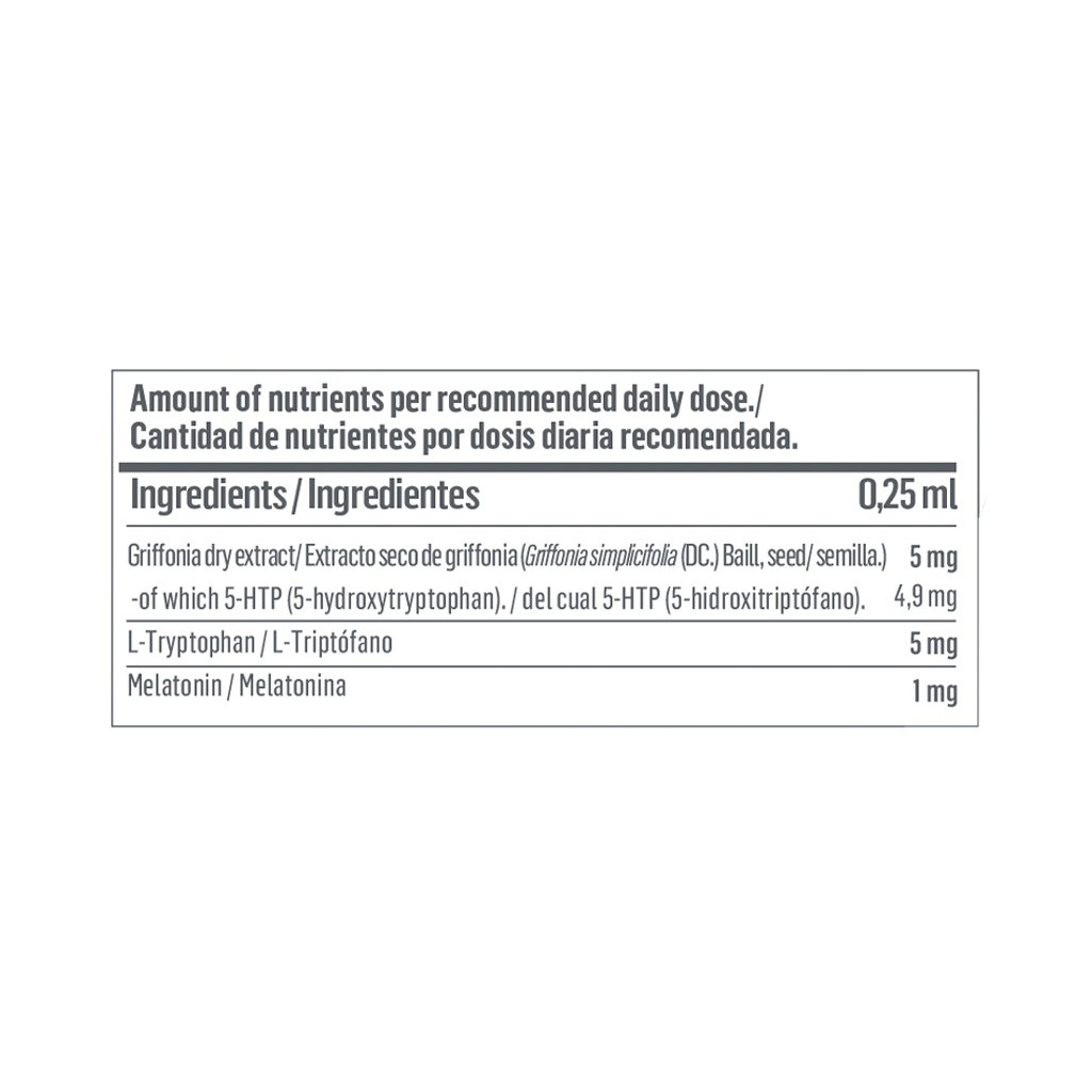 | INGREDIENTES | – Extracto seco de Griffonia (Griffonia simplicifolia (DC.) Baill., semilla), L-Triptófano, Melatonina |